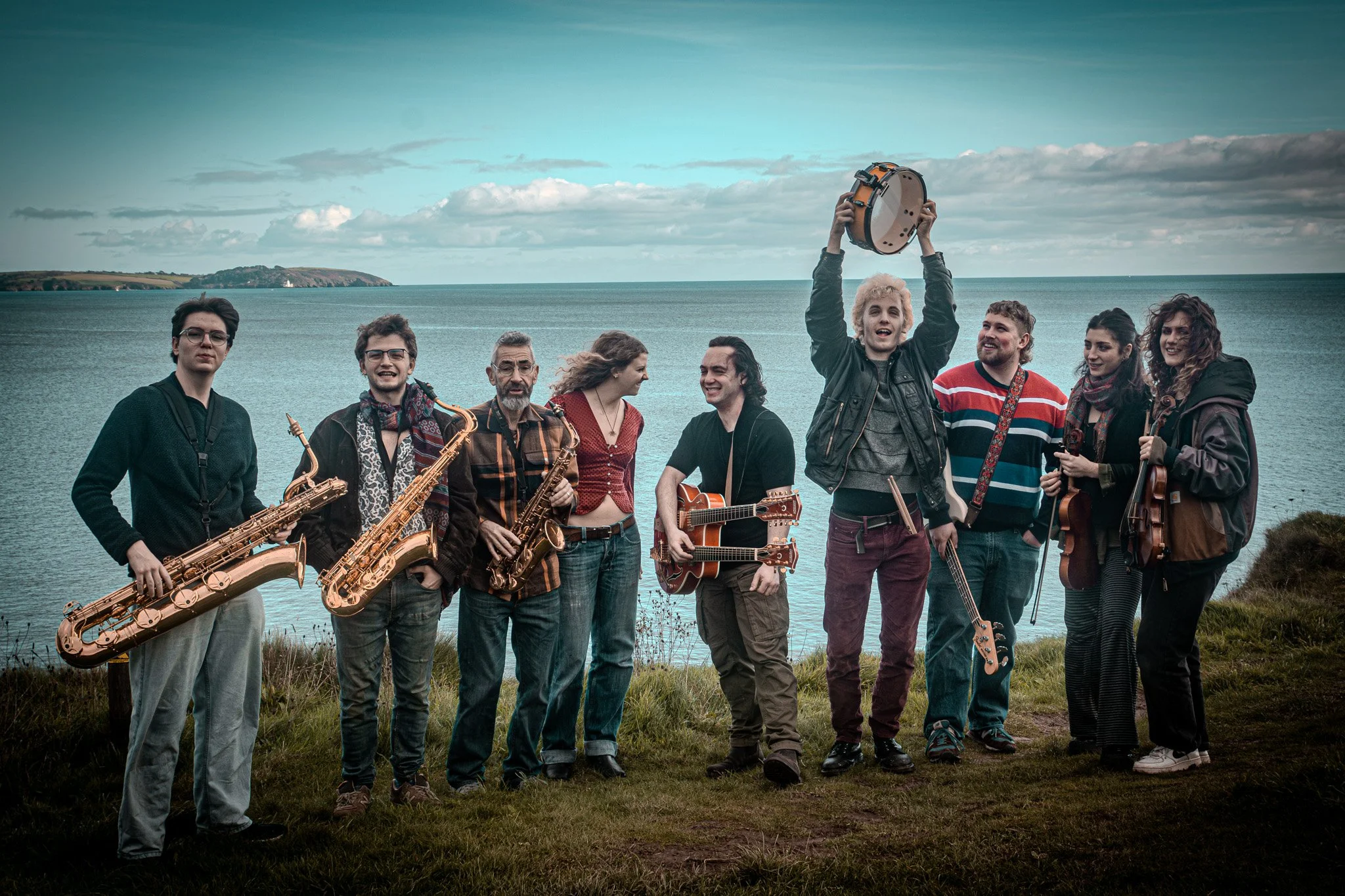 The ensemble brings together a three-saxophone front line, a rhythm section built around drums and bass, and a string and synth layer that expands the harmonic and textural range. Together, these elements create a sound that moves between precision and intensity, balancing structure with momentum.